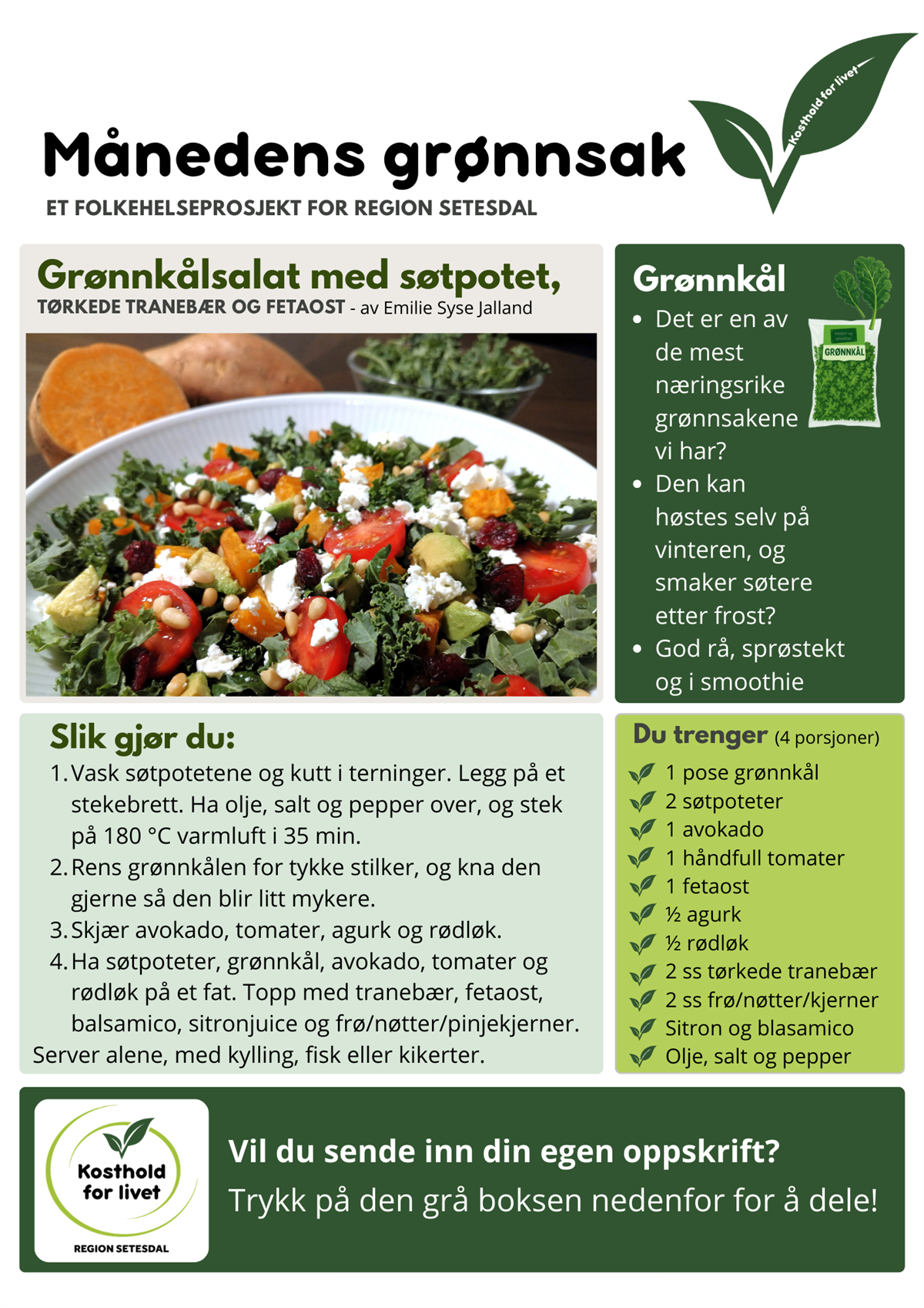 Månedens grønnsak Grønnkål oppskriftHar du en næringsrik oppskrift som du er glad i, og som andre kan ha glede av?