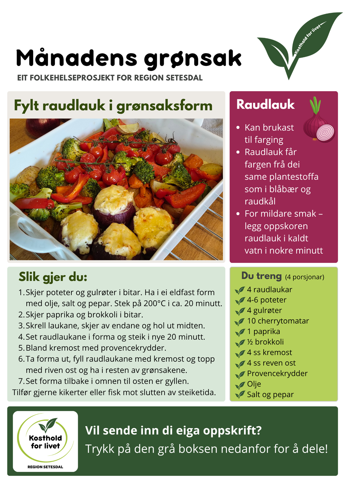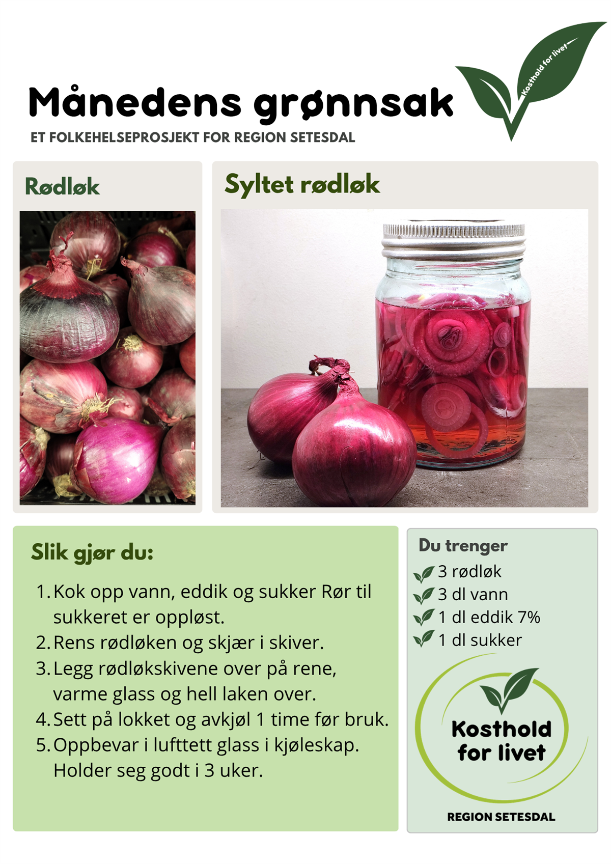 Oppskrift syltet rødløkHar du en næringsrik oppskrift som du er glad i, og som andre kan ha glede av?