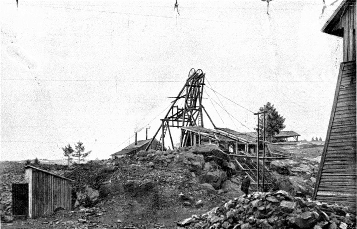 The sloping shaft was named Alfred Merry's shaft during the 1O years the British firm of H. H. Vivian Co. leased the Flåt mining operation from A/S Evje Nikkelverk.
